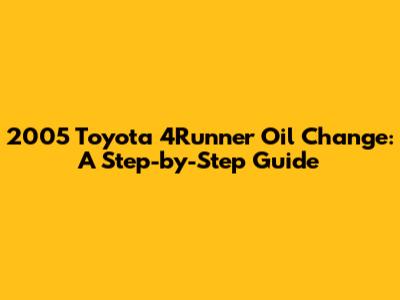 2005 Toyota 4Runner Oil Change: Your Complete Guide