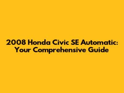 Decoding the 2008 Honda Civic SE Automatic: Specs and Features