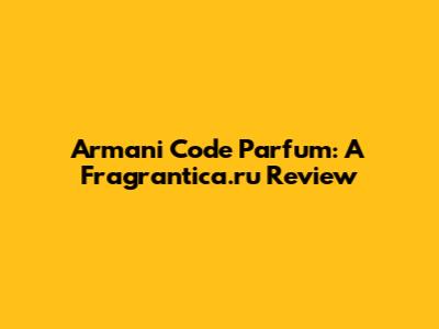 Armani Code Parfum: A Fragrantica.ru Review