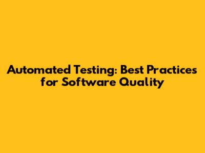 Automated Testing: Best Practices For Software Quality