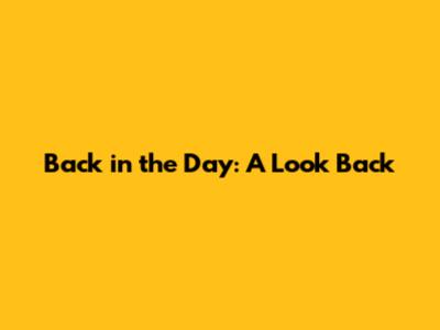 Back In The Day: A Look Back