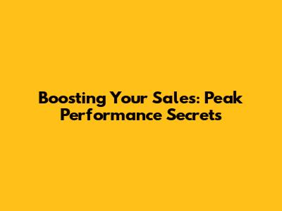 Boosting Your Sales: Peak Performance Secrets