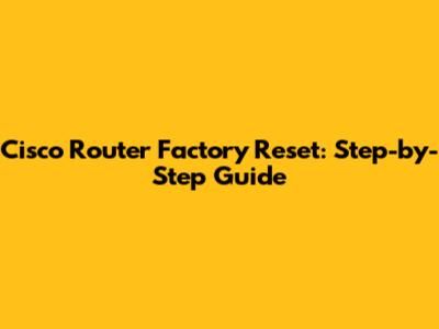Cisco Router Factory Reset: Step-by-Step Guide