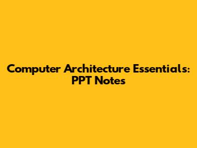 Computer Architecture Essentials: PPT Notes