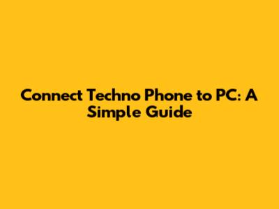 Connect Techno Phone To PC: A Simple Guide