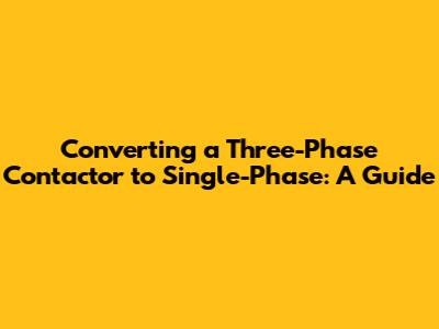 Converting A Three-Phase Contactor To Single-Phase: A Guide