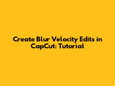 Step-by-Step Tutorial: Creating a Blur Velocity Edit in CapCut