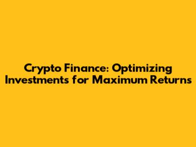 Crypto Finance: Optimizing Investments For Maximum Returns