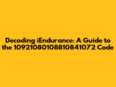 Decoding IEndurance: A Guide To The 10921080108810841072 Code