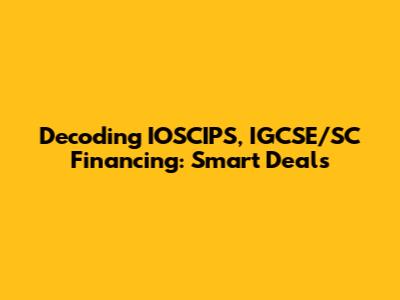 Decoding IOSCIPS, IGCSE/SC Financing: Smart Deals