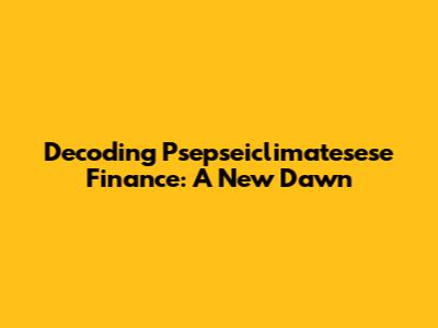 Decoding Psepseiclimatesese Finance: A New Dawn