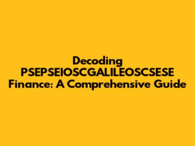 Hey finance enthusiasts! Let's dive deep into the world of PSEPSEIOSCGALILEOSCSESE finance. You might be wondering, "What in the world is that?" Well, don't worry, we're going to break it all down for you. This comprehensive guide will illuminate the complexities of this financial landscape, ensuring you have a solid understanding of its intricacies. So, buckle up, because we're about to embark on a journey of discovery, exploring the key components, functions, and significance of PSEPSEIOSCGALILEOSCSESE finance. We'll be covering everything from its historical context to its current applications and future trends. Get ready to have your financial knowledge boosted!