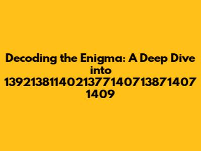 Unpacking the Mystery: What Could 1392138114021377140713871407 1409 Mean?