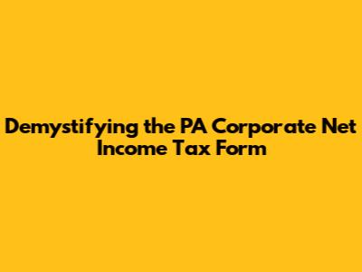 Hey everyone, let's dive into the PA Corporate Net Income Tax Form – a topic that might seem a bit intimidating at first glance, but trust me, we'll break it down so it's super easy to understand. As a business owner or someone involved in corporate finances, getting a handle on this form is crucial for staying compliant with Pennsylvania's tax regulations. Think of this guide as your go-to resource, where we'll unpack everything from the basics to some more complex aspects of the form. We'll explore the key components, the filing process, and some helpful tips to make your tax season a breeze. So, grab your coffee (or your favorite beverage), and let's get started on navigating the PA Corporate Net Income Tax Form!
