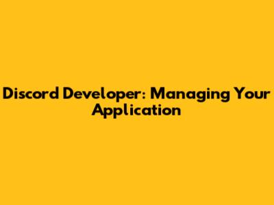 Discord Developer: Managing Your Application