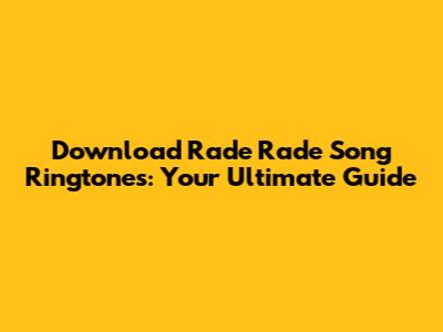 Download Rade Rade Song Ringtones: Your Ultimate Guide