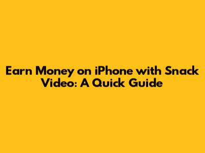 Earn Money On IPhone With Snack Video: A Quick Guide