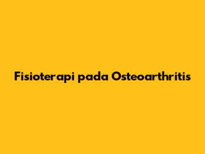 Peran Fisioterapi dalam Mengelola Osteoarthritis