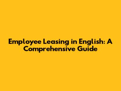 Employee Leasing In English: A Comprehensive Guide