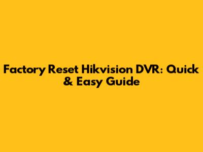 Factory Reset Hikvision DVR: Quick & Easy Guide