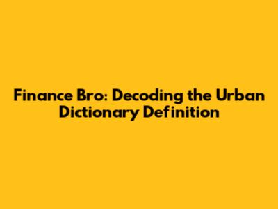 Finance Bro: Decoding The Urban Dictionary Definition
