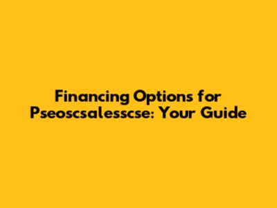 Financing Options For Pseoscsalesscse: Your Guide