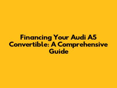 Financing your Audi A5 Convertible is an exciting step toward owning a fantastic car. By understanding your options, taking the time to shop around, and following these tips, you can secure the best possible financing deal and get behind the wheel of your dream car sooner rather than later. Good luck, and happy driving!