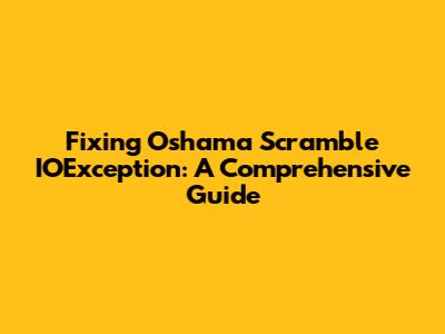 Fixing Oshama Scramble IOException: A Comprehensive Guide