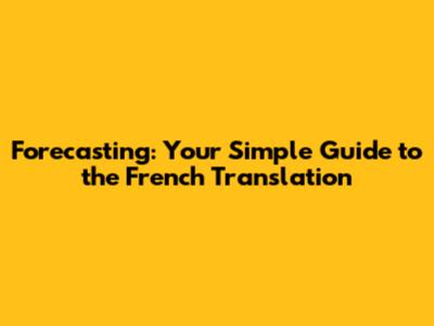 Forecasting: Your Simple Guide To The French Translation
