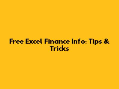 Free Excel Finance Info: Tips & Tricks