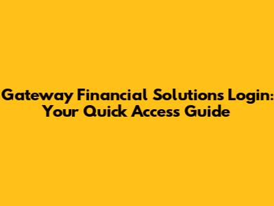 Gateway Financial Solutions Login: Your Quick Access Guide