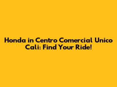 Honda In Centro Comercial Unico Cali: Find Your Ride!