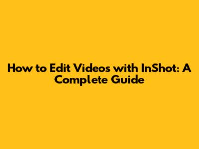 How To Edit Videos With InShot: A Complete Guide