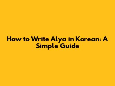 How To Write 'Alya' In Korean: A Simple Guide