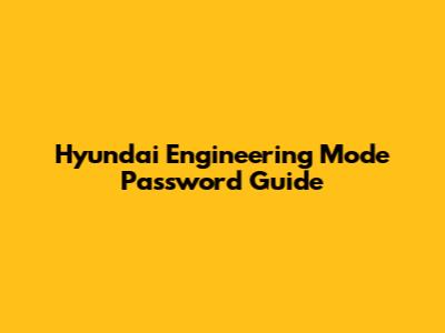 Hyundai Engineering Mode Password Guide