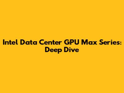 Intel Data Center GPU Max Series: Deep Dive