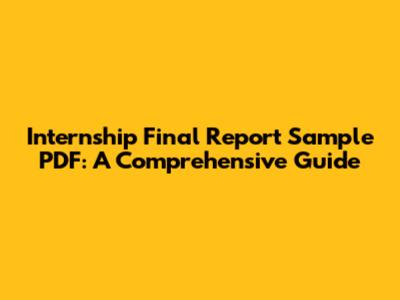 Internship Final Report Sample PDF: A Comprehensive Guide