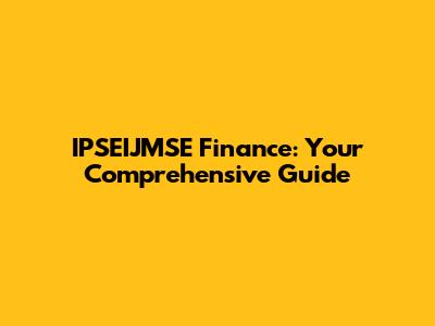 IPSEIJMSE Finance: Everything You Need To Know