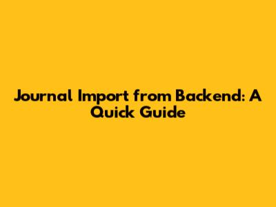 Journal Import From Backend: A Quick Guide