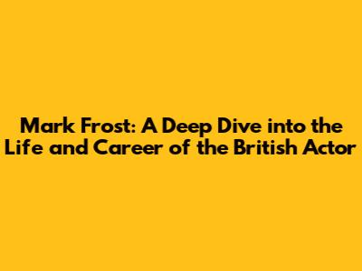 Hey guys! Ever heard of Mark Frost? If you're a fan of British actors, especially those who bring a certain je ne sais quoi to their roles, then you're in for a treat. This article will be a deep dive into the life and career of Mark Frost. We'll be exploring his early life, his journey into acting, some of his most memorable roles, and what makes him such a compelling figure in the world of entertainment. So, grab a cuppa, settle in, and let's get started!
