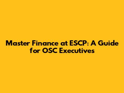 Master Finance At ESCP: A Guide For OSC Executives