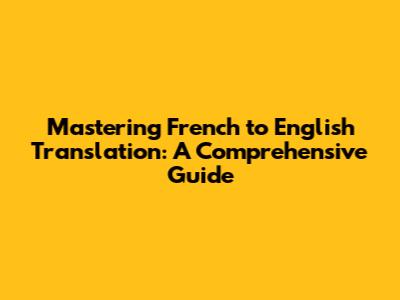 Mastering French To English Translation: A Comprehensive Guide