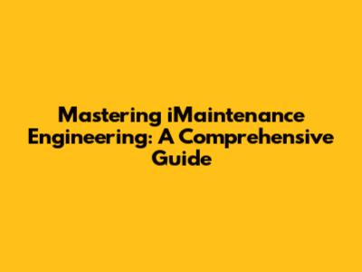 Mastering IMaintenance Engineering: A Comprehensive Guide