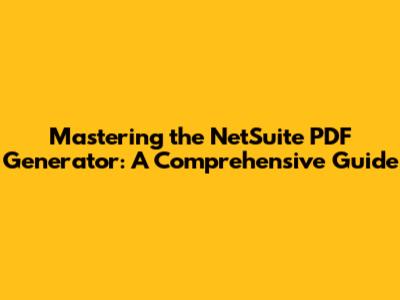 Mastering The NetSuite PDF Generator: A Comprehensive Guide