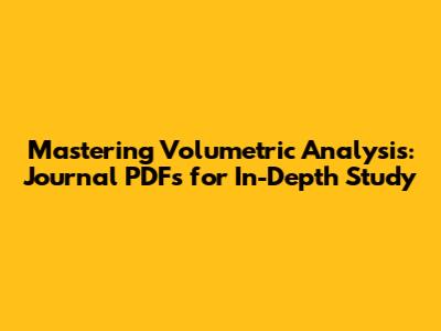 Mastering Volumetric Analysis: Journal PDFs For In-Depth Study