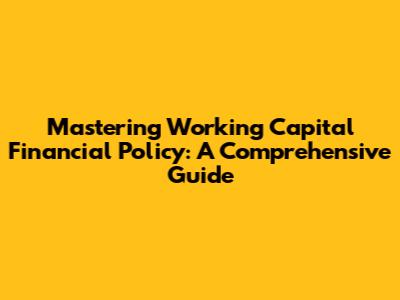 Mastering Working Capital Financial Policy: A Comprehensive Guide
