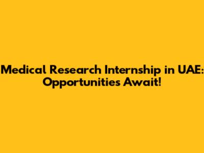 Medical Research Internship In UAE: Opportunities Await!