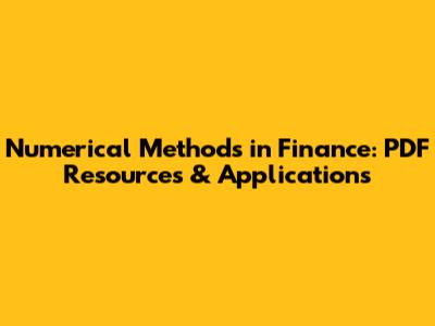Numerical Methods In Finance: PDF Resources & Applications