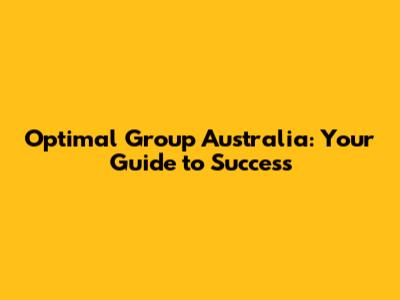 Optimal Group Australia: Your Guide To Success