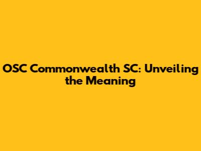 OSC Commonwealth SC: What Does It Mean?